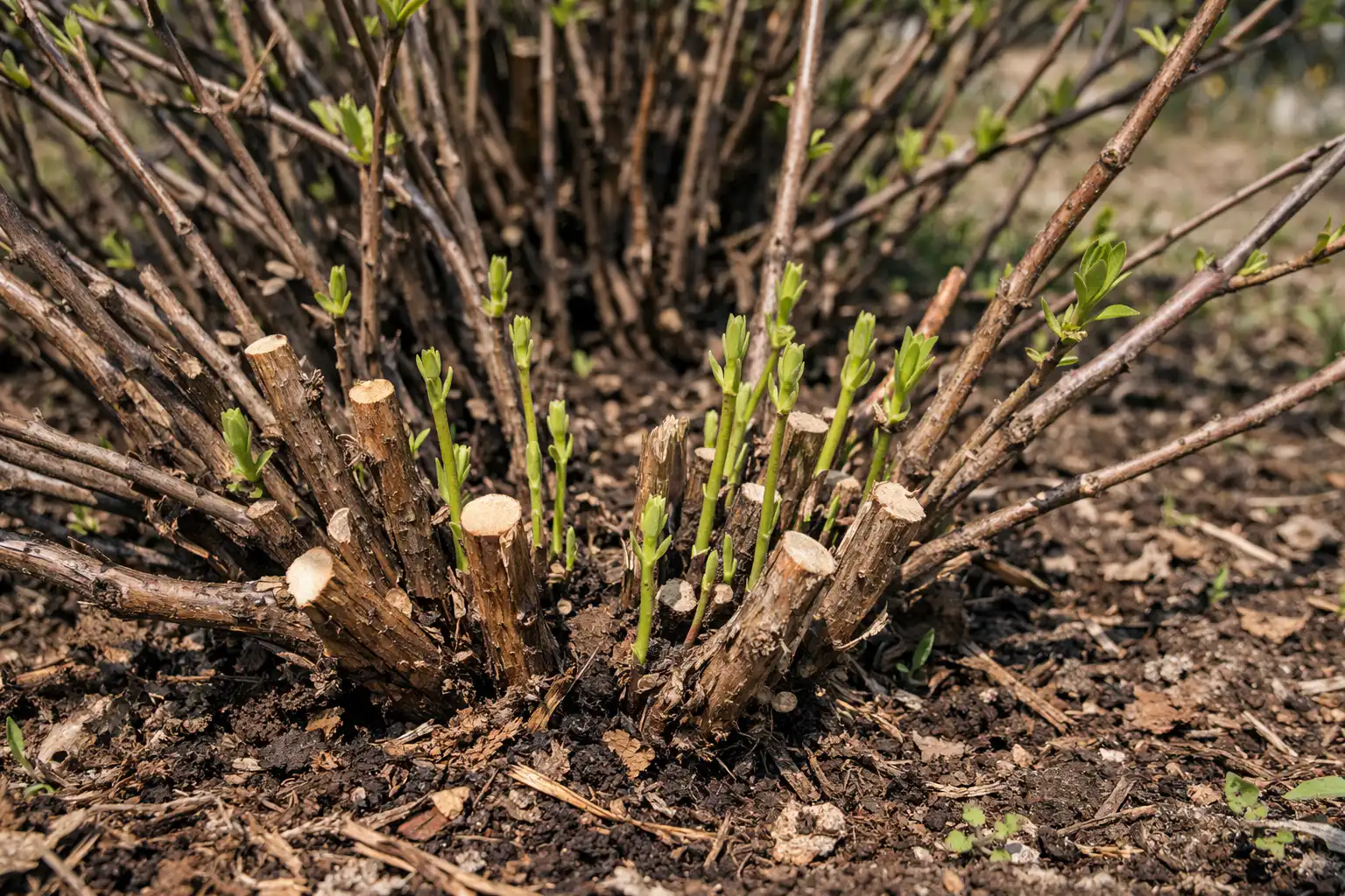 Forsøg ikke at efterlade mere end 12-15 skeletagtige grene af forskellig alder i busken.