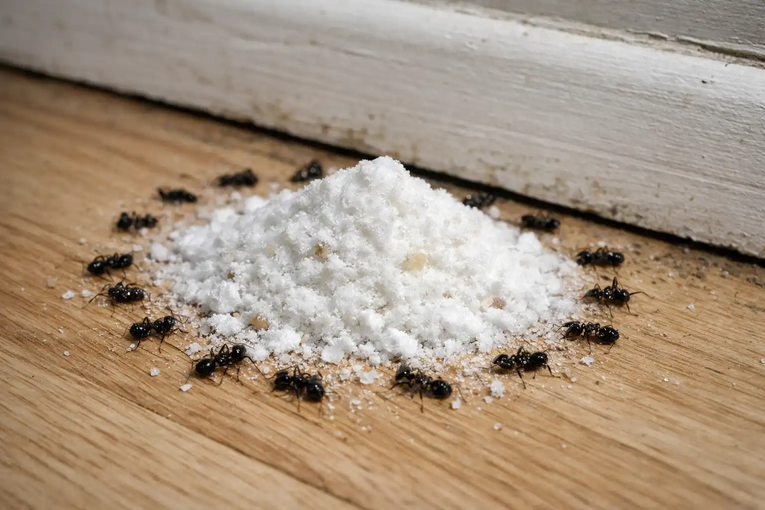 En stor fejl, som mange mennesker begår, er blot at sprede pulver langs fodpanelet. Myrer er kloge nok til at omgå en forhindring, som de ikke finder attraktiv. For at metoden skal virke, skal bagepulveret omdannes til en “trojansk hest”.og blandet med kulhydrater, som insekterne trækker ind til hjertet af myretuen.