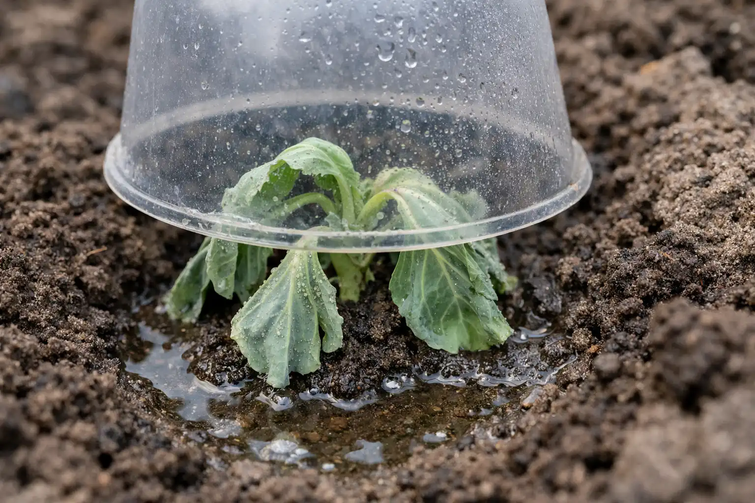 Korrekt forberedelse af hullet og beskyttelse mod direkte sol garanterer en overlevelsesrate på 100 % for kål, selv i et tørt forår.