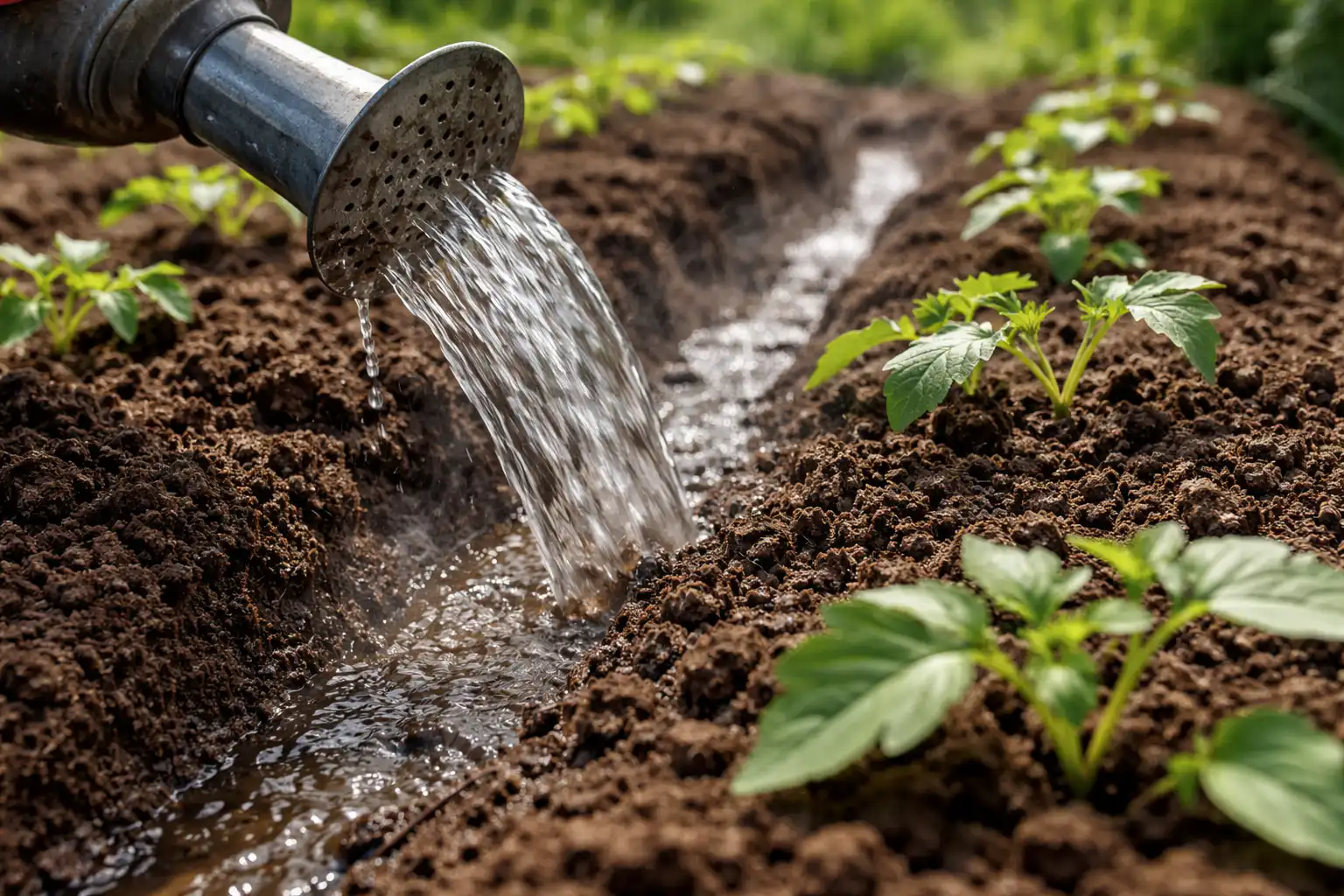 En hemmelig nuance: Vanding skal ikke ske under roden, men i forberedte furer ved siden af planten for ikke at skabe en “badeeffekt” for den ømme rodhals.