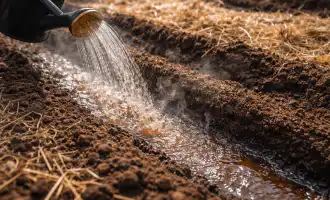 Læg en håndfuld humus eller jord ovenpå for at isolere roden.