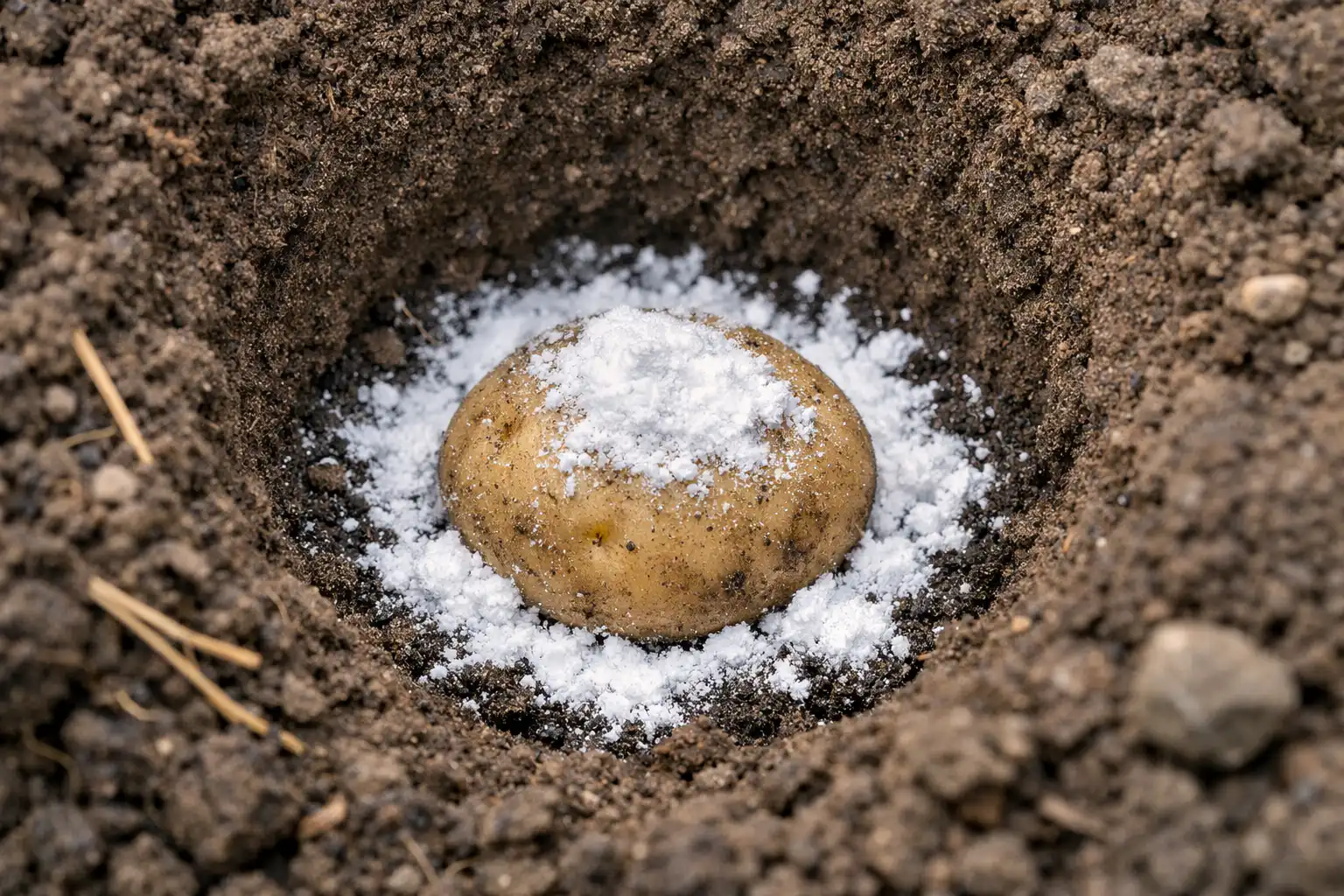 Brugen af bagepulver hjælper også med at kontrollere patogene svampesom ofte kommer ind i knoldene gennem skadedyrsskader. På den måde får du den dobbelte fordel af insektbeskyttelse og sygdomsforebyggelse.