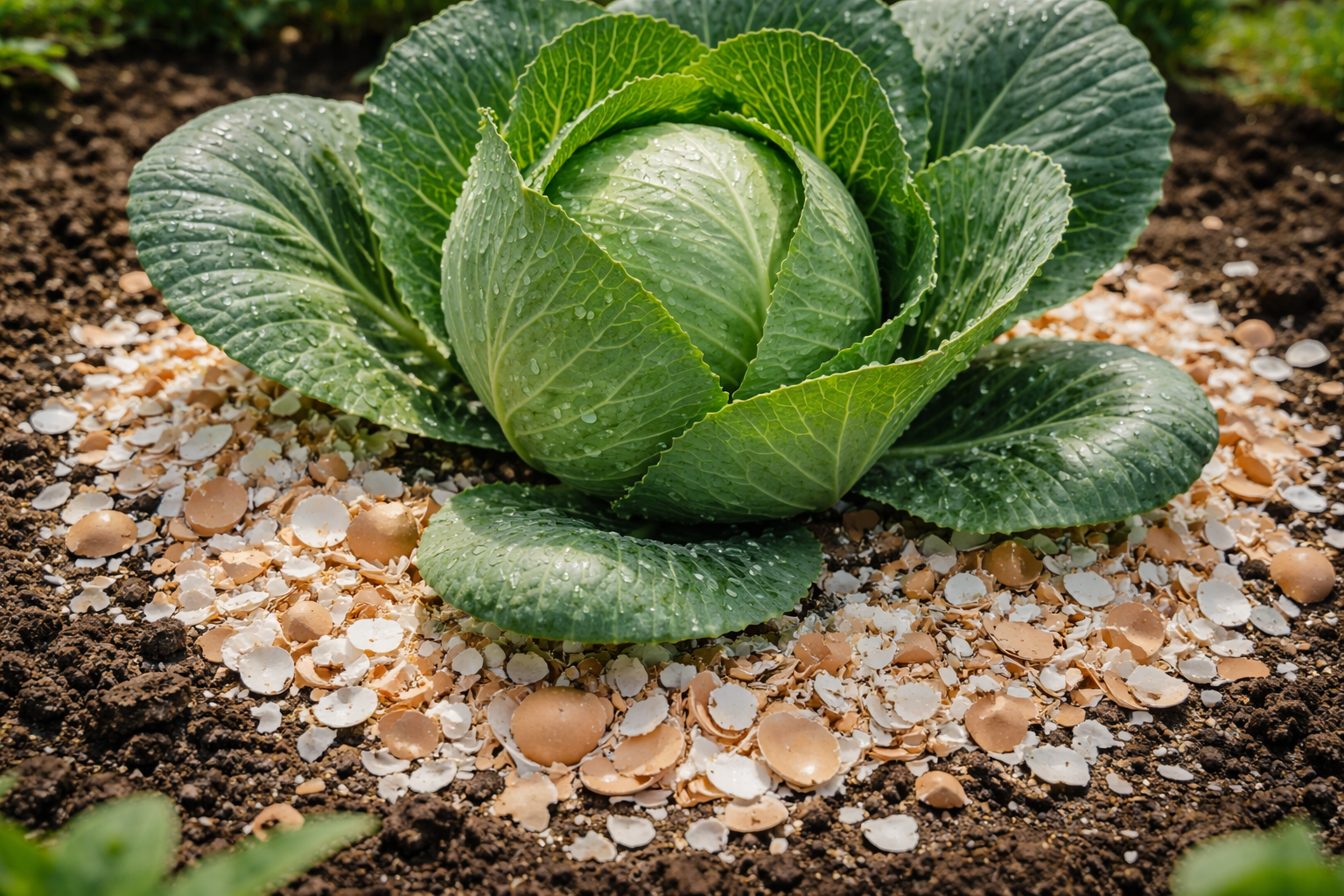 Kål er ekstremt følsom over for jordens surhedsgrad og angreb fra skadedyr. Skallen løser begge disse problemer på samme tid, idet den fungerer som en blid deoxidationsmiddel og mekanisk barriere.