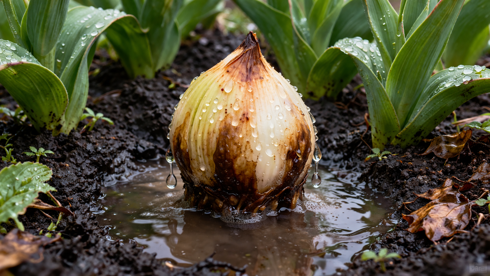 Det er en naturlig proces i løs jord, men overskydende fugt fremskynder “opstramningen” af løget, så spiren mangler styrke til at bryde igennem til overfladen.