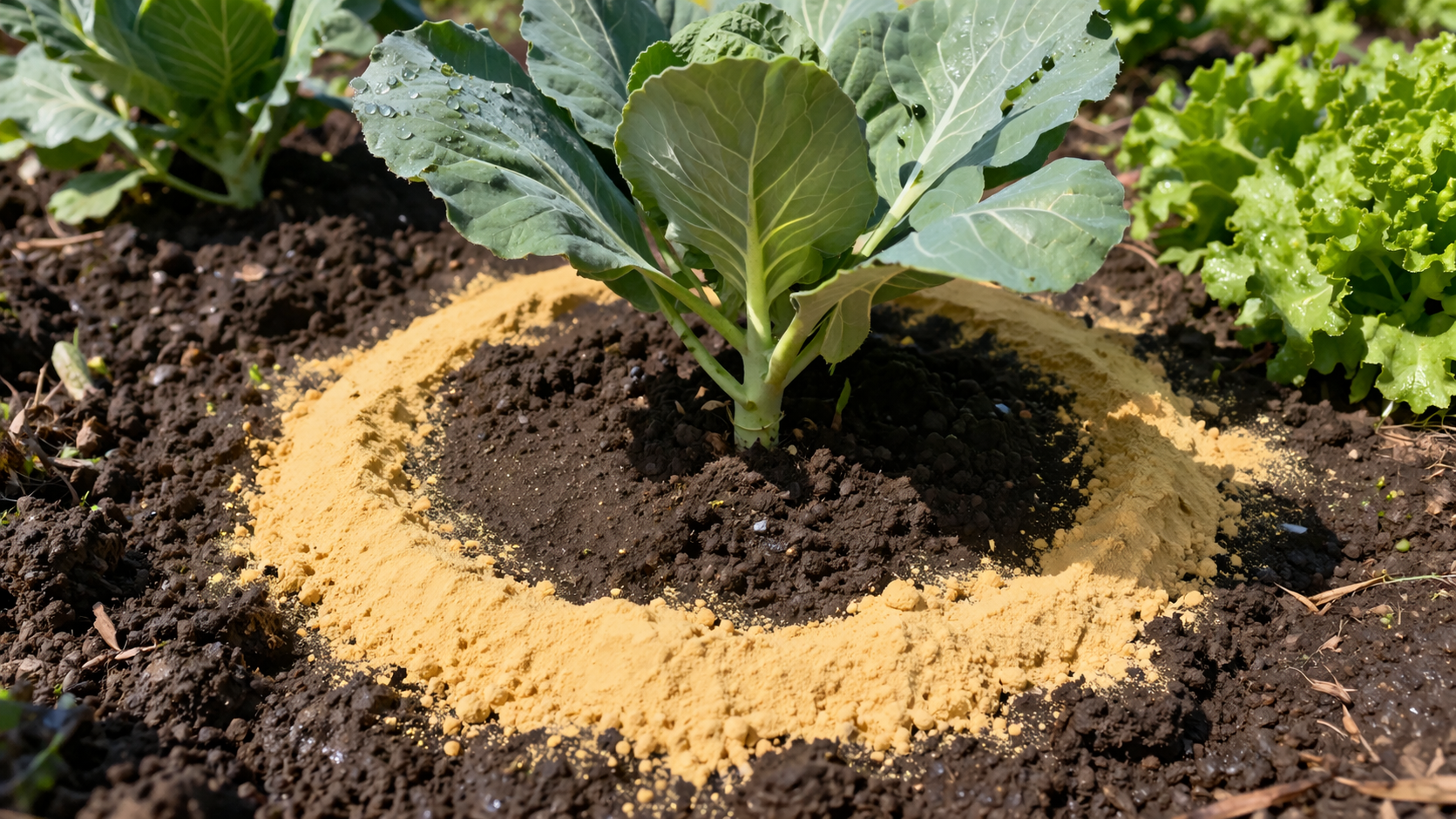For at opnå maksimal effekt er det vigtigt at følge applikationsteknologien. Det er ineffektivt blot at sprede pulver over hele køkkenhaven – det er nødvendigt at skabe beskyttende konturer.