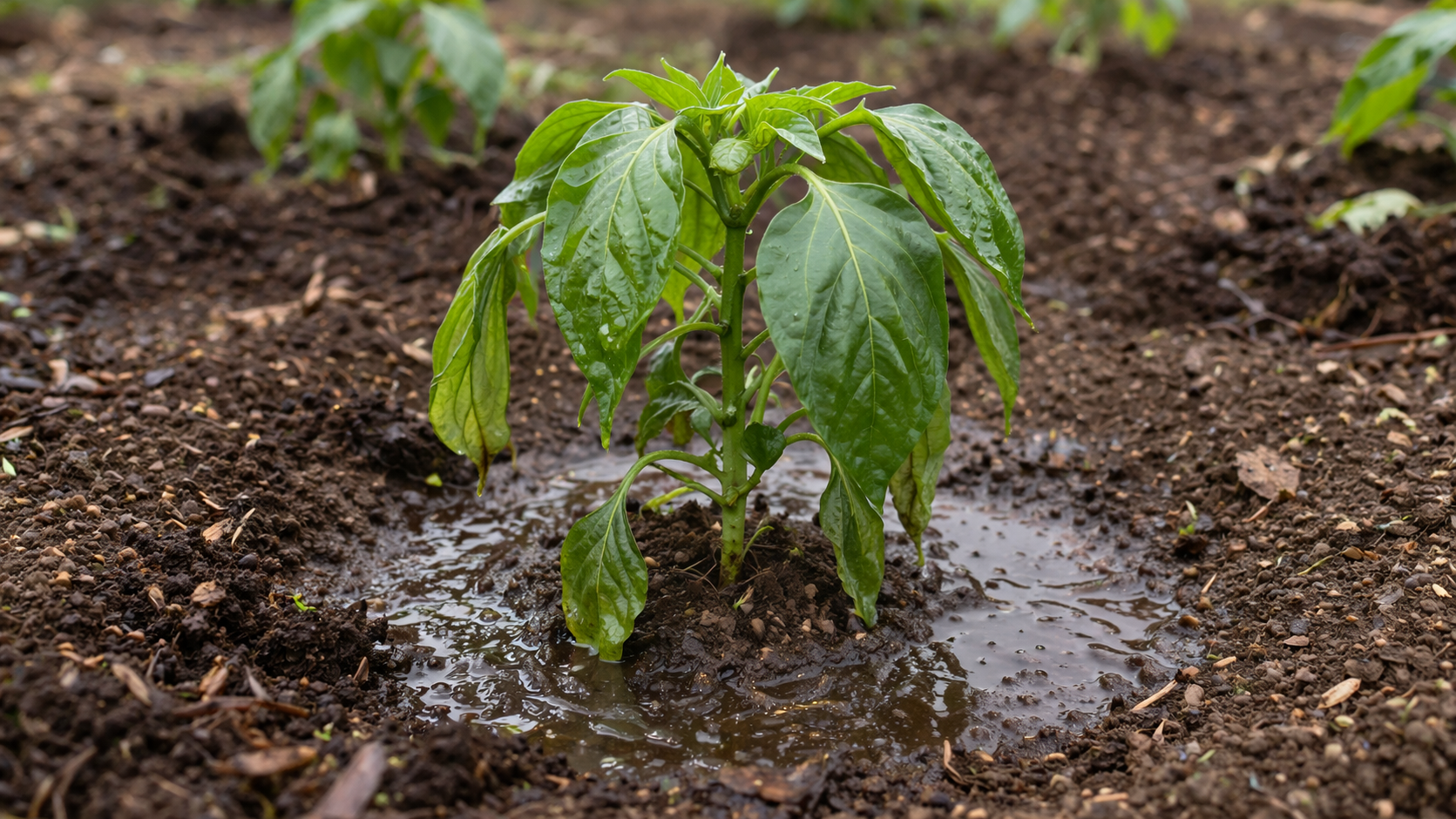 Den største fjende for unge peberfrugter “Kolde fødder”. Hvis jordtemperaturen er under et vist punkt, holder rodsystemet simpelthen op med at pumpe vand, selv om bedet bliver forvandlet til en sump.