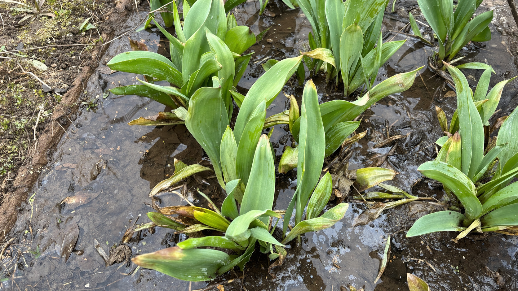 Erfarne blomsteravlere ved, at tulipaner bedre tåler en kortvarig tørke end en permanent “sump”. I min praksis var der et tilfælde, hvor det efter et unormalt regnfuldt forår kun var de blomster, der voksede på en lille skråning, der overlevede – der forsvandt vandet naturligt.