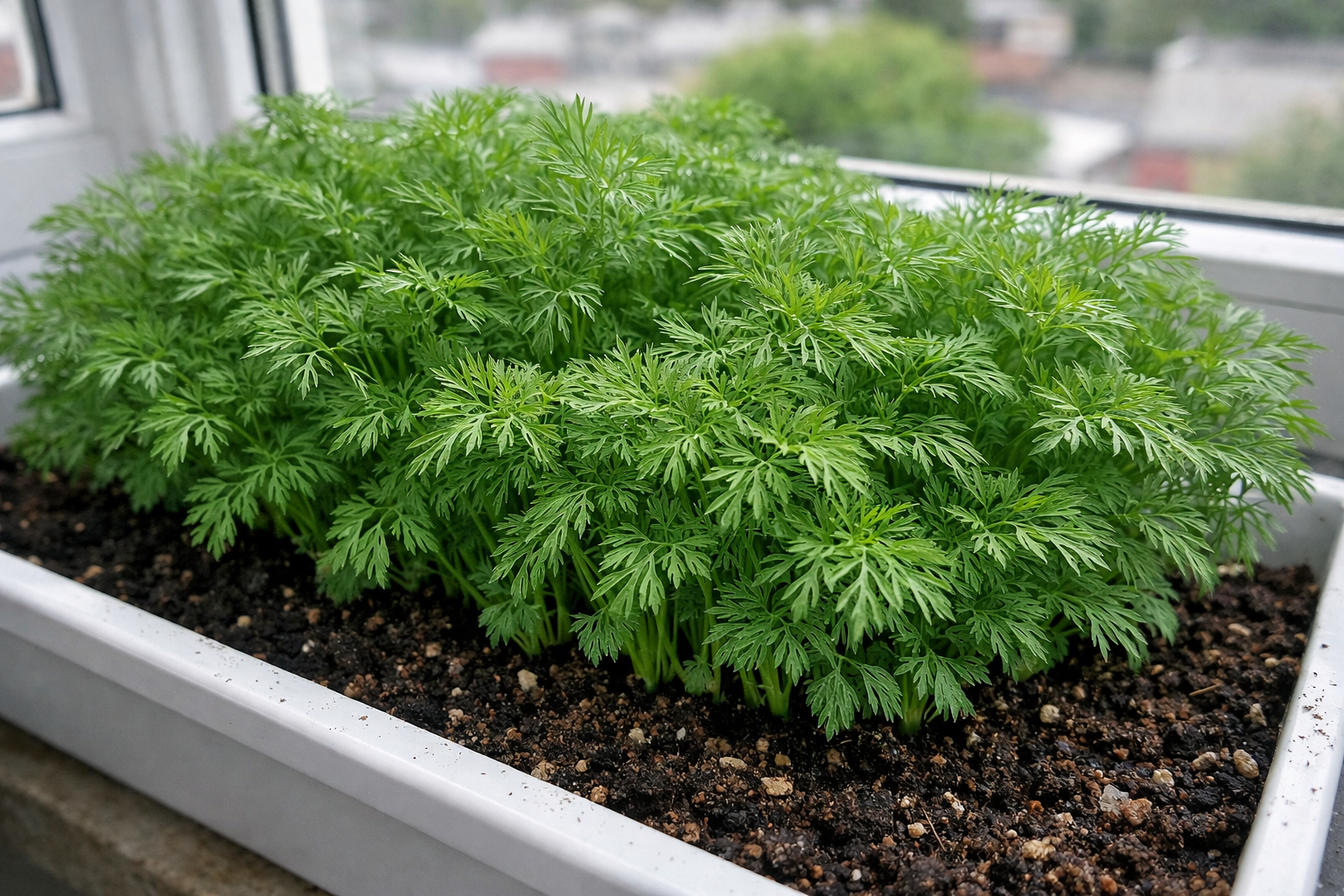 Det rigtige valg af sort og forudgående iblødsætning af frø garanterer en tæt afgrøde af grønt i enhver vindueskarm.