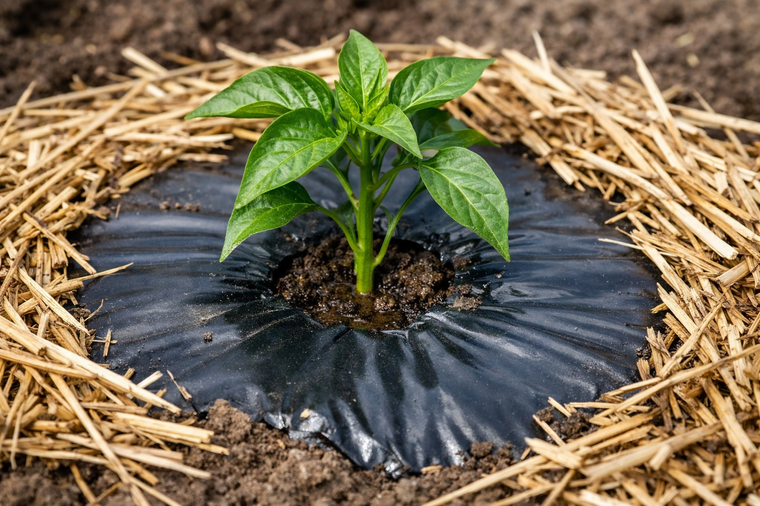 For at forhindre, at peberfrugter tørrer ud i den første uge, er det nødvendigt at skabe det rigtige mikroklima omkring dem. Mulching – er den base, uden hvilken fugten forlader jorden i løbet af få timer under forårssolen.