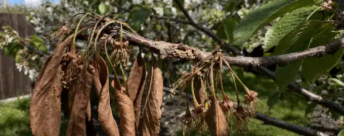 Gartnere forveksler ofte moniliose (monilial skoldning) med den sædvanlige knopfrysning, men konsekvenserne er anderledes. Hvis kirsebærblomsterne pludselig